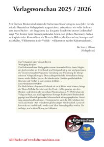 Mit frischem Rückenwind startet der Kulturmaschinen Verlag ins neue Jahr: Gerade mit der Bayerischen Verlagsprämie ausgezeichnet, präsentieren wir voller Stolz unsere neuen Bücher – ein Programm, das die ganze Bandbreite unserer...