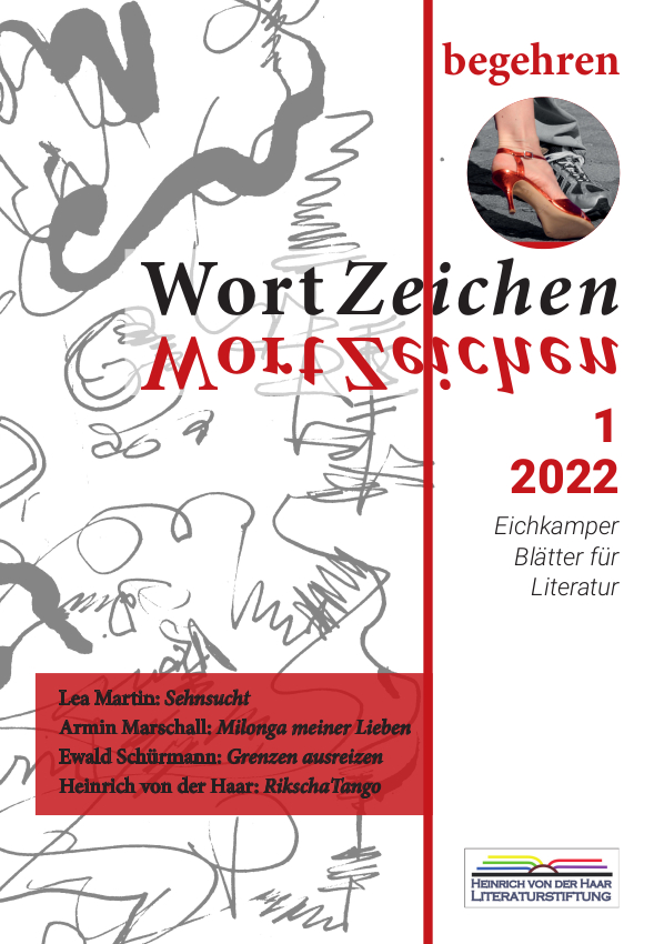 Die Schrift WortZeichen 1 – 2022 befasst sich mit dem Thema »begehren«. In Kurzgeschichten, Lyrik und Romanauszügen erleben die Lesenden vielschichtige Innen- und Außenwelten des Begehrens. Es wird facettenreich erzählt, voller Leidenschaft und Humor. Ein besonderes Anliegen ist die Verbindung von Literatur, Musik und Tanz.