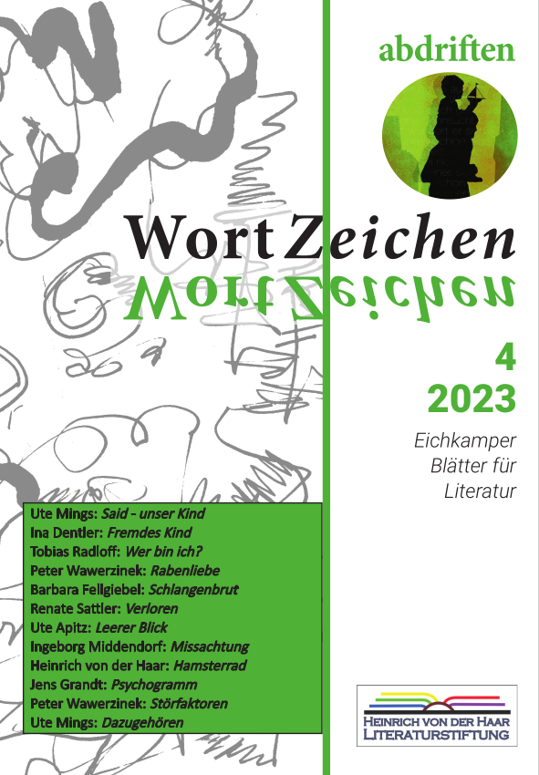 Mit Beiträgen von Ute Mings: Said - unser Kind / Peter Wawerzinek: Rabenliebe / Ina Dentler: Fremdes Kind / Tobias Radloff: Wer bin ich? /Heinrich von der Haar: Abdriften und Hamsterrad / Barbara Fellgiebel: Schlangenbrut / Ute Apitz: Leerer Blick / Renate Sattler: Verloren / Ingeborg Middendorf: Missachtung / Jens Grandt: Der Idealist – Versuch eines Psychogramms.